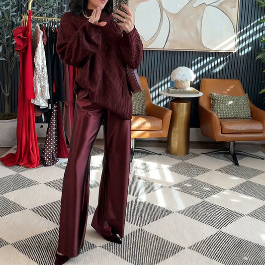✨Damesett med lange ermer og bukser i pluss-størrelse, 2-delt