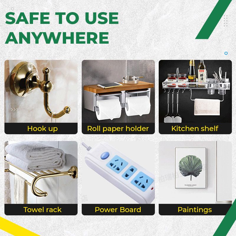 Søknad - Frostet glass, marmor, lakkert tre, myke metallplater, fliser, mosaikk. Det er best å bruke et usynlig veggfeste. og er ideell for å feste gulvlister, polystyrenlister, vinduskarmer, knagger osv.