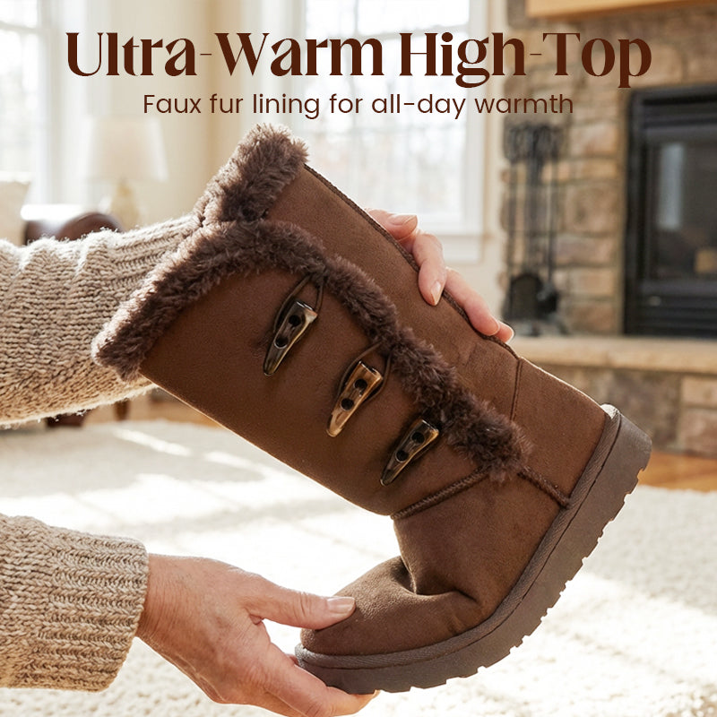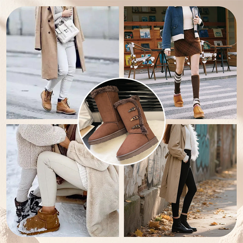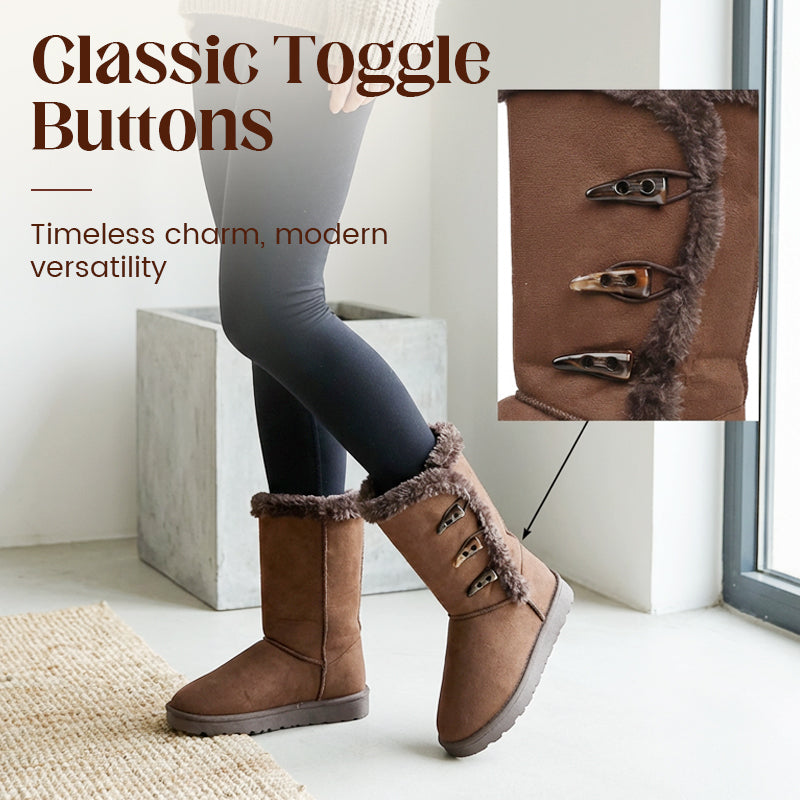 KLASSISK KNAPPESNED – Løft vintergarderoben din med et tidløst design. Den dekorative detaljen med tre knapper gir et snev av klassisk sjarm, noe som gjør disse støvlene til et stilig valg som passer perfekt til leggings, jeans eller vinterkjoler.