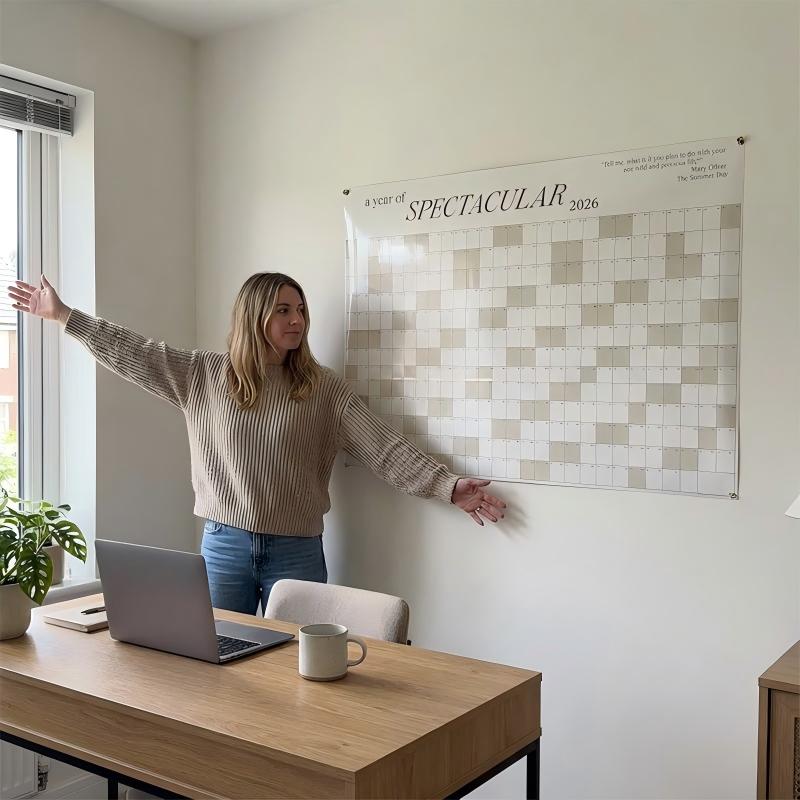 ELEGANT MINIMALISTISK DESIGN – Med ren typografi og en nøytral fargepalett fungerer denne kalenderen som et kunstverk. Den integreres sømløst i og forbedrer innredningen på kontoret, kjøkkenet eller stuen din.