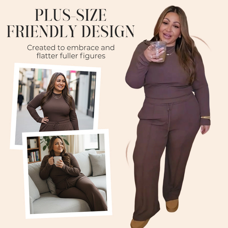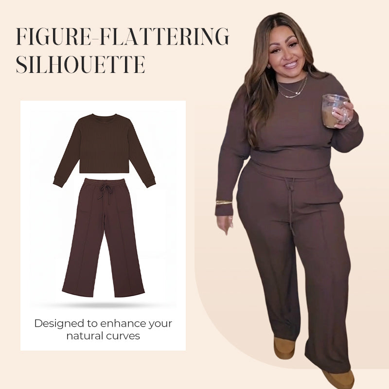 ✨Damesett med lange ermer og bukser i pluss-størrelse, 2-delt
