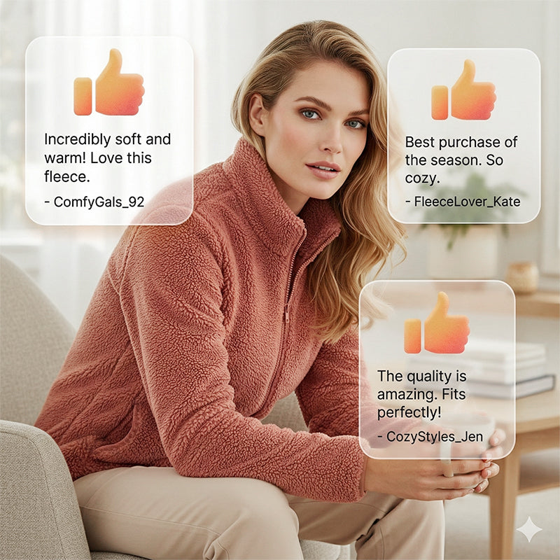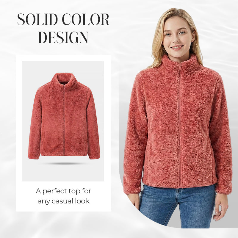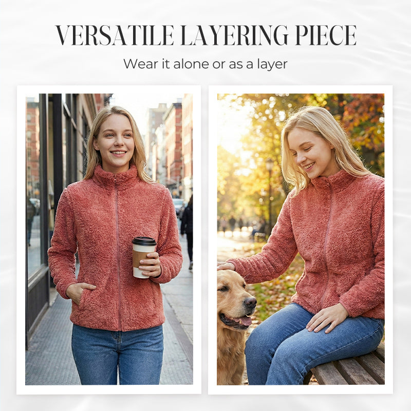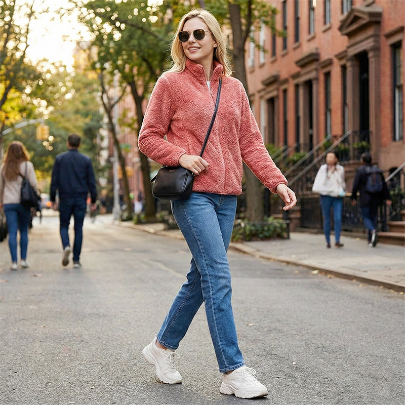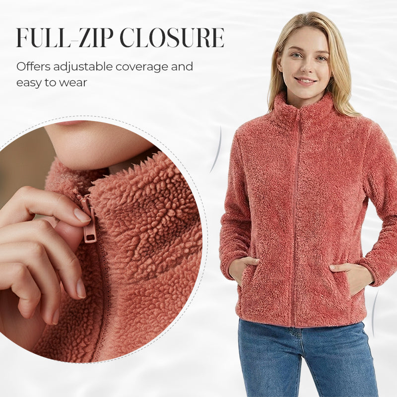 Damejakke med glidelås og lommer, shaggy